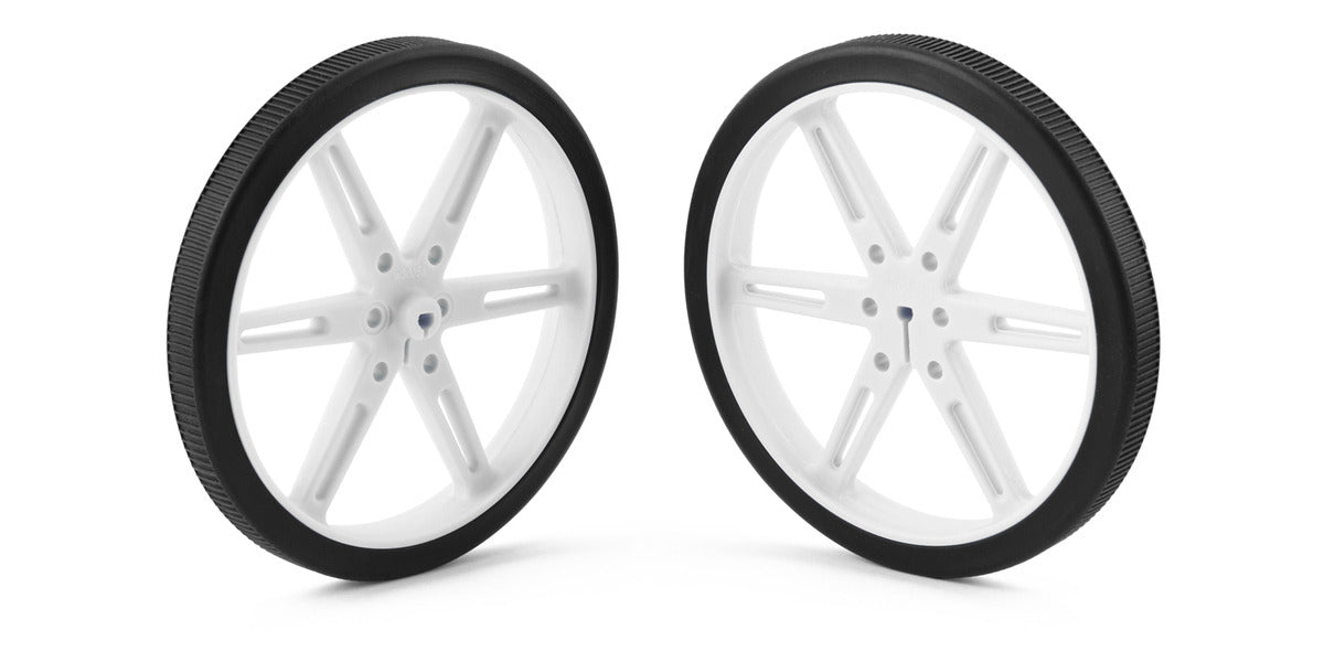 Diese weißen Kunststoffräder haben Silikonreifen und messen 80 mm (3,15″) im Durchmesser. Sie passen auf die 3mm D-Wellen vieler unserer Motoren, einschließlich unserer Mikro-Metall-Getriebemotoren und unserer Mini-Kunststoff-Getriebemotoren. Außerdem ist dieses Rad mit mehreren unserer universellen Montagenaben kompatibel, die als Adapter für Motoren mit anderen Wellen dienen können. Dieses Produkt ist ein Paar Räder.